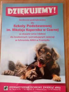 Stowarzyszenie ARKA dziękuje nam za pomoc dla zwierząt w schronisku. Szkolny Klub Wolontariatu przekazał wszystko, co przynieśliście dla psiaków i kociaków. Dzięki Waszym dobrym sercom zwierzakom będzie łatwiej przetrwać zimowy czas.