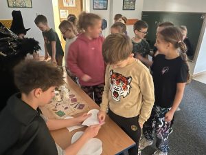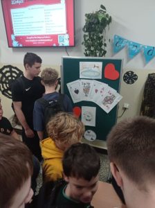 W piątek każdy mógł spróbować odkryć odrobinę „przyszłości”. Uczniowie przekłuwali papierowe serca, aby poznać imię swojej sympatii, losowali magiczne bileciki, szukali szczęśliwych liczb wśród gwiazd oraz kręcili kołem, by dowiedzieć się, jaki zawód może ich czekać w dorosłym życiu. Bogaty katalog wróżb sprawił, że każdy znalazł coś dla siebie.