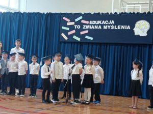 Uczniowie klasy pierwszej zaprezentowali przygotowany program artystyczny. Dzieci śpiewały piosenki i recytowały wiersze. Ich występ wywołał duże emocje wśród zebranych, szczególnie wśród rodziców, którzy z dumą obserwowali swoje pociechy.