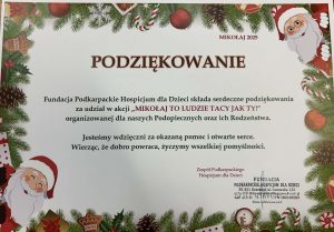 Szkolny Klub Wolontariatu posegregował dary, które przynosiliście dla hospicjum. Dobry duszek dostarczył je do Fundacji Podkarpackie Hospicjum dla Dzieci w Rzeszowie.