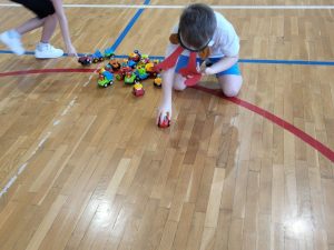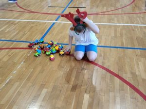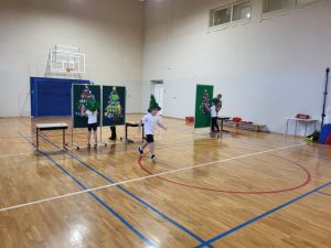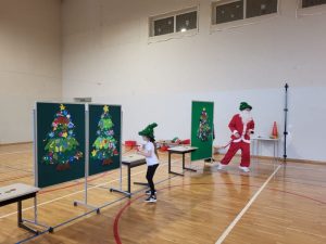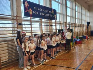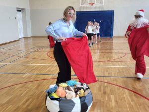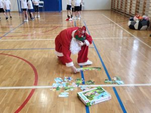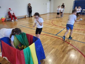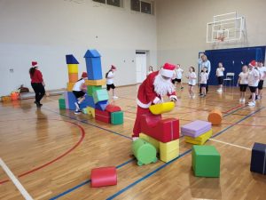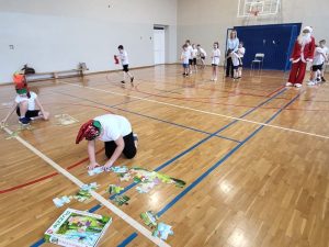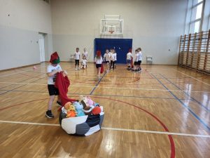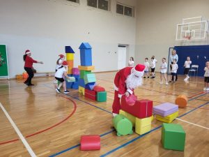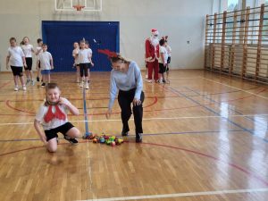 Na uczestników czekało mnóstwo świątecznych, pełnych energii konkurencji! Dzieci z ogromnym zaangażowaniem dekorowały choinkę, pakowały maskotki do worka Świętego Mikołaja, układały puzzle, budowały wieże z klocków, zakładały mikołajowe spodnie oraz poszukiwały prezentów wśród kolorowych piłeczek. Każde zadanie wywoływało salwy śmiechu, doping kolegów i koleżanek oraz prawdziwego ducha sportowej rywalizacji.