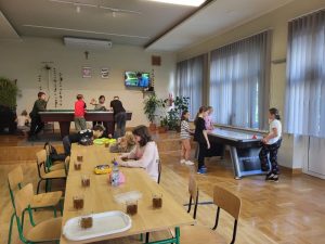 Następnie – dzięki uprzejmości pracowników Domu Kultury w Zalesiu – strudzeni cykliści mogli posilić się pyszną herbatą, by – po nabraniu sił – wyruszyć w drogę powrotną. Wycieczka rowerowa – pomimo drobnych trudności z niepokornym łańcuchem – była bardzo udana. Liczymy, że podobnych eskapad będzie więcej. Zachęcamy wszystkich do takiej formy aktywności!