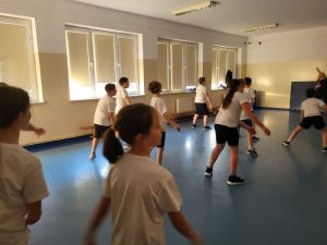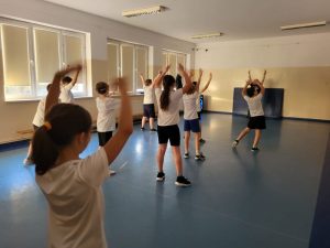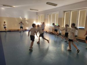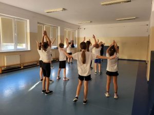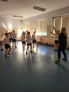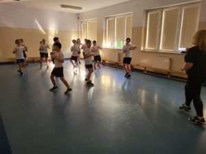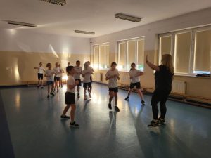 Po części teoretycznej i kulinarnej uczniowie udali się do sali gimnastycznej, gdzie pod okiem instruktora odbyły się energiczne zajęcia zumby. Dzieci z entuzjazmem wykonywały choreografie, a podczas „koncertu życzeń” mogły same wybrać muzykę do ćwiczeń.
