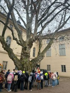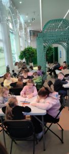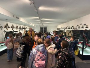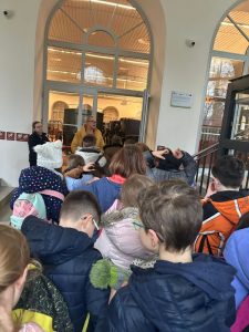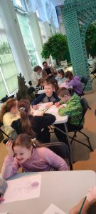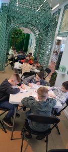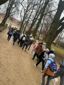 Zwiedzaliśmy jedną z najpiękniejszych rezydencji arystokratycznych w Polsce – prawdziwą perełkę Podkarpacia. Uczniowie zostali podzieleni na grupy, dzięki czemu każdy mógł odkrywać Łańcut na swój sposób. Klasy drugie spacerowały alejkami parku w stylu angielskim, który otacza zespół pałacowy, co prawda pogoda nas nie rozpieszczała, ale nie zepsuła dobrych humorów. Następnie wraz z przewodnikiem udaliśmy się do niesamowitego miejsca jakim jest storczykarnia, pełna egzotycznych roślin i intensywnych zapachów. Pobyt w storczykarni był chwilą prawdziwego relaksu – wśród bujnej zieleni i naturalnych zapachów uczniowie mogli wyciszyć się i doświadczyć bliskości natury, wykorzystując zmysł węchu jako element naturalnej terapii. W pałacowej oranżerii uczniowie wzięli udział w warsztatach plastycznych, podczas których kolorowali storczyki dokładnie tak, jak zapamiętali je ze szklarni. Była to okazja do rozwijania kreatywności oraz utrwalania zdobytej wiedzy podczas gry w memory.