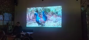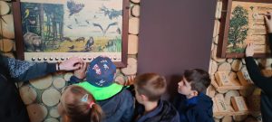 Zwiedziliśmy również zbiorniki retencyjne i udaliśmy się do Ośrodka Hodowli Głuszca w Brzózie Królewskiej. Uczestniczyliśmy w bardzo ciekawych zajęciach o głuszcach, czyli gatunku skrajnie zagrożonego. To ptaki bardzo płochliwe i źle znoszące obecność człowieka. Pani Ania przybliżyła nam sylwetkę tych niezwykłych ptaków leśnych. Omówiła ich śpiew, który składa się z pięciu faz: klapanie, trelowanie, korkowanie i szlifowanie. Dzieci obejrzały krótkie filmiki, w których było słychać moment tokowania ptaka. Ptak po wydaniu tego charakterystycznego śpiewu na moment traci słuch i wzrok, stąd ich nazwa. Uczniowie mieli okazję zobaczyć te niezwykłe ptaki na żywo za szklaną szybą oraz skorzystać z wielu tablic edukacyjnych, puzzli, pieczątek, itp.
