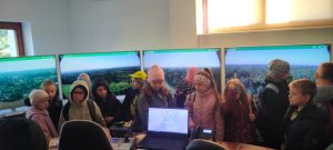 Następnie odwiedziliśmy pomieszczenie z kamerami i monitorami, które pozwalają na kontrolę i nagrywanie akcji patrolowo-gaśniczych. To była świetna okazja, aby zrozumieć, jak ważną rolę odgrywają technologie w ochronie lasów. Dodatkowo przypomnieliśmy sobie numery alarmowe oraz zasady zachowania w sytuacjach zagrożenia, co jest nieocenioną wiedzą.