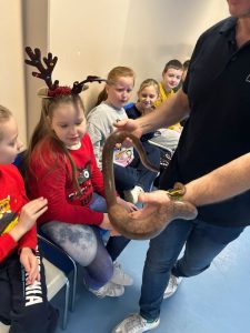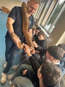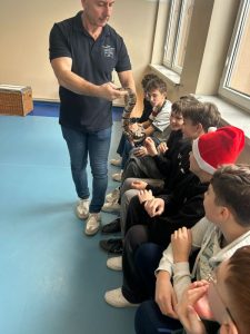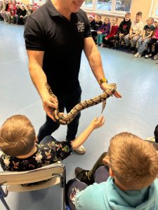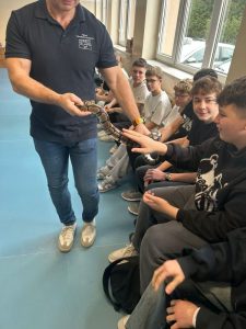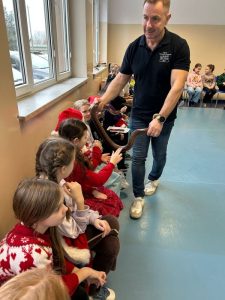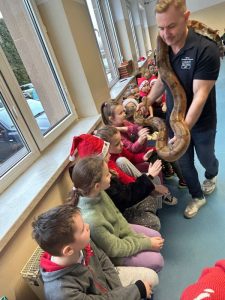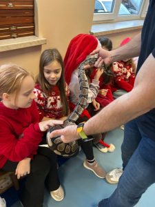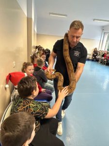 Proszę się nie zdziwić – w tym roku uczniowie naszej szkoły obchody Mikołajek mogą kojarzyć wcale nie z tradycyjnymi reniferami, a z … WĘŻAMI! A to za sprawą żywej lekcji biologii pt. „Gady”. Miała ona miejsce 5 grudnia, kiedy to na małej sali gimnastycznej powitaliśmy przedstawicieli tej egzotycznej grupy zwierząt.