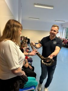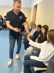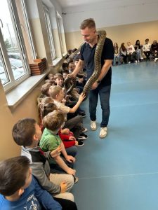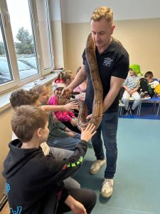 Jak się okazało pupilem może być nie tylko pies, kot czy świnka morska, ale również boa lub pyton o imionach: Grażynka, Marlenka, Julian czy Maleństwo. Mieliśmy okazję poszerzyć wiedzę słuchając informacji i ciekawostek na temat zwierząt, ale także przełamać bariery lękowe i obalić istniejące w społeczeństwie mity.